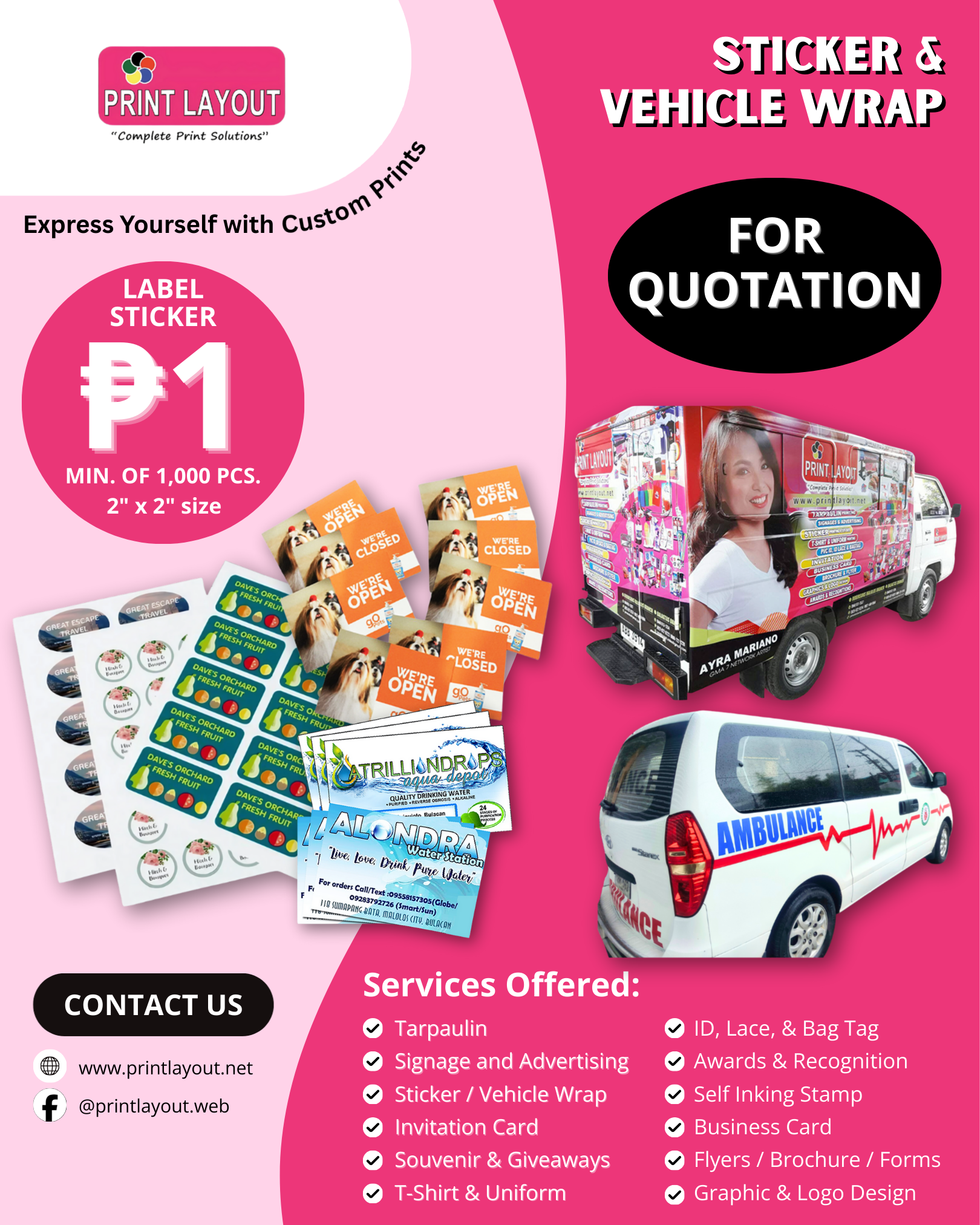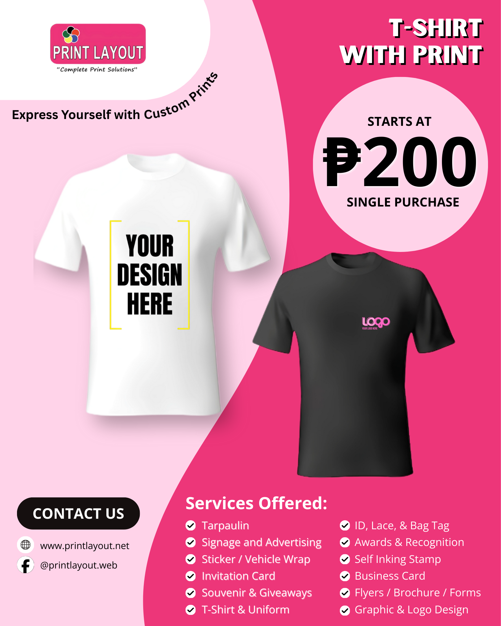 Enjoy high-quality printing with fast, reliable delivery — whether you’re ordering a few pieces or in bulk. We offer a wide range of customizable products to meet all your printing needs.